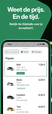 Ontdek de moeiteloze manier om door de stad te reizen met Bolt. Jouw smartphone is de sleutel tot comfortabel en voordelig vervoer, precies wanneer je het nodig hebt. Of je nu op weg bent naar een belangrijke afspraak of een avondje uit, een nabije chauffeur staat paraat om je snel en veilig naar je bestemming te brengen. Bij Bolt geniet je van complete transparantie; de ritprijs is altijd duidelijk voordat je je aanvraag bevestigt, en betalen is eenvoudig via de app met diverse opties zoals creditcards, pinpassen of Apple Pay. Efficiëntie en gemoedsrust, 24 uur per dag, 7 dagen per week.