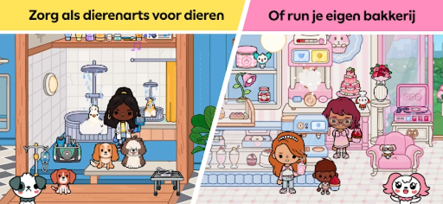 Stap binnen in de levendige wereld van Toca Boca World, waar jouw fantasie de enige grens is. Creëer je eigen verhalen en speel elke rol die je maar kunt bedenken. Wil je een energieke docent zijn, een zorgzame dierenarts, of misschien wel een trendsettende influencer? Alles is mogelijk! Breng je unieke personages tot leven met de uitgebreide Personagedesigner en geef ze een eigen stijl, van kapsel tot accessoires. Ontwerp je droomhuis, een bruisende supermarkt of zelfs een avontuurlijke camper met de intuïtieve woninginrichtingstools. Kies uit talloze meubels en kleuren om elke ruimte precies zo te maken als jij wilt, ook in de steeds groeiende collectie nieuwe locaties.