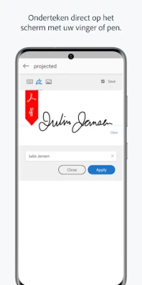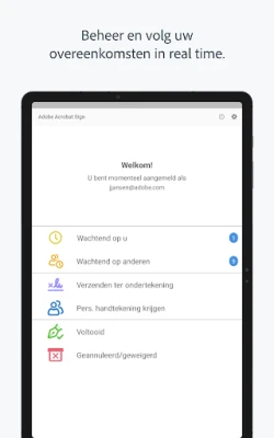 Optimaliseer uw documentworkflow en zet de stap naar een papierloze toekomst met Adobe Acrobat Sign, uw mobiele bondgenoot voor de beproefde elektronische ondertekeningsdienst van Adobe. Deze applicatie stelt u in staat om overal en altijd documenten en formulieren rechtsgeldig te ondertekenen, of om deze moeiteloos ter ondertekening naar anderen te versturen. Dankzij de expertise van Adobe, al meer dan 25 jaar een wereldleider in veilige digitale documenten, wordt Adobe Acrobat Sign door diverse sectoren vertrouwd – van Fortune 1000-bedrijven tot de gezondheidszorg en financiële instituten – om cruciale bedrijfsprocessen in onder meer verkoop, HR en juridische zaken aanzienlijk te versnellen. Ontdek de kracht van efficiëntie direct vanuit uw handpalm.