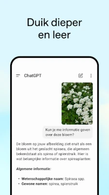 De interactieve mogelijkheden van ChatGPT maken communicatie intuïtief en efficiënt. Activeer de spraakmodus voor dynamische gesprekken onderweg, vraag om een uniek verhaaltje voor het slapengaan, of breng een levendige discussie tijdens een etentje tot een goed einde. Bovendien kun je met de foto-upload functie een handgeschreven recept moeiteloos digitaliseren of direct gedetailleerde informatie opvragen over een indrukwekkend monument. De app overbrugt de kloof tussen jouw waarnemingen en een schat aan kennis.