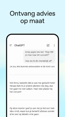Van een creatieve vonk tot professionele diepgang, de veelzijdigheid van ChatGPT is ongekend. Genereer inspirerende ideeën voor verjaardagscadeaus of creëer persoonlijke wenskaarten. Ontvang advies op maat om een persoonlijke reactie te formuleren of een lastige situatie te bespreken. Personaliseer je leerervaring, bijvoorbeeld door uit te leggen hoe elektriciteit werkt aan een kind dat dol is op dinosaurussen, of om moeiteloos je kennis over een historische gebeurtenis op te frissen. Het biedt ook waardevolle professionele input voor het brainstormen over marketingmateriaal of het verfijnen van een businessplan, en levert bovendien direct handige antwoorden voor alledaagse vragen, zoals receptideeën met de ingrediënten die je toevallig in huis hebt.