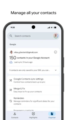 Behoud volledige controle over uw contacten. Deze app maakt betrouwbaar back-ups van al uw telefoonnummers en e-mailadressen, en synchroniseert ze naadloos op al uw apparaten. Zo zijn uw waardevolle verbindingen altijd veilig en direct toegankelijk, waar u ook bent.