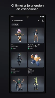 Druk jouw unieke persoonlijkheid uit door je digitale alter ego volledig te personaliseren. Met een onuitputtelijke catalogus van kledingstukken, accessoires, expressies en meer, kun je elke stijl creëren die je maar kunt bedenken. Blijf bovendien eenvoudig verbonden met jouw groep. De Party-functionaliteit biedt een vlotte manier om met maximaal zes vrienden samen van de ene naar de andere ervaring te springen. Gebruikers van 13 jaar en ouder kunnen via Party ook naadloos chatten of bellen, wat communicatie en coördinatie binnen de uitgestrekte wereld van Roblox vereenvoudigt.